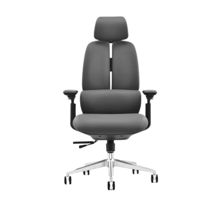 Le bureau est de forme asymétrique, avec un plateau principal rectangulaire et un retour plus petit formant un angle. Cette configuration offre un espace de travail principal généreux ainsi qu’un espace de rangement ou d’exposition supplémentaire. La chaise de bureau arbore un design contemporain épuré, alliant élégance et fonctionnalité. Revêtue d’un tissu bleu nuit, elle offre un contraste saisissant avec le bois clair du bureau. Son assise et son dossier, rembourrés et ajustables en hauteur, garantissent un confort optimal tout au long de la journée. Le soutien lombaire intégré préserve le dos, tandis que le piètement chromé sur roulettes assure une grande mobilité.